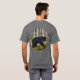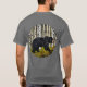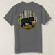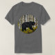 Stiliserad svartbjörn som går genom en skogsmiljö. Björnen är avbildad i en mörk färg, med texturer som framhäver dess päls. I bakgrunden finns höga björkar med vit bark, som förstärker den naturliga miljön. Marken är täckt av livfull grön mossa, vilket ger en frodig kontrast. Den övergripande kompositionen är cirkulär och skapar en harmonisk och lugn skogsscen. Björnen tycks vara i rörelse, vilket ger en dynamisk dimension till den stillsamma miljön.