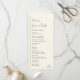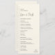 Modern bröllopsprogram med en enkel och minimal geometrisk utformning med en lodrät längs den lämnat sidan med detaljer i lämnat justering. Namn är i ett handskript för elegant. I högernas hörn i grund är ditt första monogram över en liten vågrät. Du kan ändra paletten färg i verktyg för designredigering.