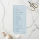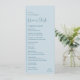 Modern bröllopsprogram med en enkel och minimal geometrisk utformning med en lodrät längs den lämnat sidan med detaljer i lämnat justering. Namn är i ett handskript för elegant. I högernas hörn i grund är ditt första monogram över en liten vågrät. Du kan ändra paletten färg i verktyg för designredigering.