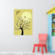 A graceful tree with dark, elegant branches sways against a yellow backdrop. Delicate blooms adorn its limbs, while soft yellow butterflies flutter around, adding a serene touch of movement and lightness to the composition.