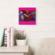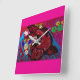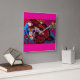 I painted my own uniquely original abstract painting signifying grace and harmony with a young woman I named Grace with a colorful floral scarf on her head with tendrils of her hair hanging from it, with a koi fish in mid swim surrounded by other floral accents, and glitter accents are added throughout.
