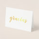 Det vackra guld-foliekortet har det spanska ord "gracias" i penselskriptet (penseldrag). Insidan av kortet är tom för ditt personliga meddelande. Perfekt när du vill tacka någon för en gåva eller vänlighet.