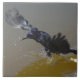 Fotografi av en söt Grackle Bird, som flyger och slår i vatten, tryckt på en Tile. — Du kan använda den här plattan i köket runt bassäng eller i badrummet med resten av plattorna.
