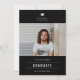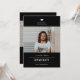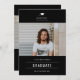 Studentmössans accent, studenten-fotoannonsering och inbjudan i klassisk svart färg med vit typografi. Mall linjer för student namn, klass för år och skola. Baksidan av kortet har 1 ytterligare fotoyta med linjer för information om ditt öppna hus/studentfest.