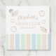 Grad club beach party with cabana stripes in shades of mint green, coastal blue and sandy brown with seashells.