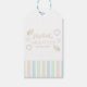 Grad club beach party with cabana stripes in shades of mint green, coastal blue and sandy brown with seashells.