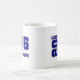 Grad-keramiskt kaffe mugg visas i blått och vitt färg. Anpassa det här objektet eller köp som det visas. Licensierad utskrift