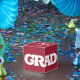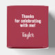 KLASSIFICERING i fetstil, vita bokstäver, radbryts runt framsidan av de röda 2-tums fyrkantiga studentfesterna med ditt namn och tack för ditt meddelande längst upp. Fyll med behandlingar som ett tack till gästerna vid din studentfest. MATCHING-objekt och mer färg i vår samling.
