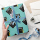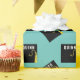Kreativ studenten-presentsäck och grad party-dekoration med svart och guld grad-sockel på tealblå bakgrund. Om du vill anpassa redigeringstexten till att lägga till namn och klassåret.