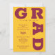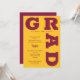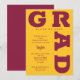 GRAD med fet vinröd text skrivs runt kanterna på dessa gula guld bakgrunds examensfestinbjudningar. MATCHANDE artiklar och fler färger i vår kollektion.