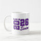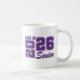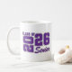 Grad senior keramisk kaffemugg visas i en lila och vit färgdesign.