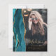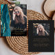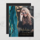 I trendigets tillkännagivande från 2025 om studenten finns en vattenfärgad geod gräns i högblått högdager med markeringar från guld glitter. Student först namn visas som ett handskriftsskript för elegant guld-färgad på ett lodrät-foto, tillsammans med efternamnet, skolåret och klassåret i typsnittet. Ett filter för svart övertoning hjälper till att trycka på texten. Ett andra foto visas på baksidan, tillsammans med meddelandet och detaljer i guld-färgad-texten på en mörk med svart bakgrund.