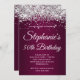 Skapa din egen snyggt, delmåls- och födelsedagsinbjudan till henne. Dekorativ faux glatt vit och silver glitter grafik överst. Den digitala konsten i bakgrunden har en röd lila vin-övertoning. Anpassa färg eller stilar i inbjudningsteckensnittet. De lyxiga gnistor, shine och glitter kommer att skapas med konstnärligt inslag som skrivs ut som ett foto. Fantastisk 50-årsdag inbjudan för din bästa väns födelsedagsfest. Purplish reddisch vin färg.
