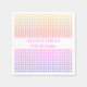 Lägg till en charmerande, personlig beröring till firande med den här söt pastellgradienten gingham napkin, perfekt för babyduschar, födelsedagsfester eller speciella händelser. Den mjuka blandningen av rosa, gult, koral och lavender skapar en lekfull och öga-fångstgig gingham mönster. Med ett vitt band i anpassadet i mitten kan du anpassa det med speciella meddelanden som "Alessandra's Baby Shower" eller "Jessica's 1st Birthday". Dessa blöjor är det perfekt sättet att lägga till stil och individualitet till firande, och skapar dem ett idealiskt val för alla fressiva tillfälle.
