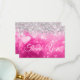Skapa ditt eget moderna stil sweet sixteen-tack för henne. Faux sparkly silvery glitter top kant parade med ett bär till blek rosa bokeh-hjärtan och punktgradientgrafik. Hela struktur i skal, gnistra och glitter skapas med en digital grafisk bild. Teckensnittet stil och färg kan anpassas. Anpassa för att skapa dina egna platta tackkort efter dotterns 16:e födelsedagsfest.