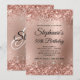 Skapa din egen inbjudan till firandet av finare-snyggten i monogram. Dekorativ faux glatt ro guld glitter utgör en överkant och grund gräns. Den digitala konsten i bakgrunden har en glam gradient ombre-gradient med rosa och ro guld. Anpassa inbjudan och färg eller stilar med ett enda teckensnitt. Det lyxkonstnärliga inslagen skriver ut som ett foto. Fantastisk 50-årsdag inbjudan för din bästa vän.