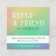 Gradient Square Rekommendationskort är ett trendigt och storleksmässigt typ av lojalitetskort som innehåller kontaktnummer, socialt handtag och webbplats. Ett praktiskt kort med all nödvändig information för att främja affärer. Dessutom är den fyrkantiga formen tänkt att skilja sig från det typiska visitkortets storlek.