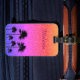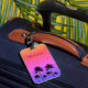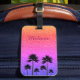 En lätt glamorfärgad bricka i personligens bagagemärke som dekoreras med handflatan träd silhuetter.