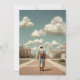 On a sunlit campus avenue, a solitary graduate stands centered on a brick pathway between grand academic buildings crowned with golden domes. Soft, towering clouds drift across a turquoise sky, creating a dreamlike atmosphere of ambition, reflection, and new beginnings. The ornate robe and cap suggest ceremony and achievement, while the open path ahead symbolizes opportunity, education, and life beyond graduation.