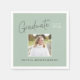 This modern graduation paper napkin features space for a photo of this year’s graduate. The design is accented with trendy, handwritten-style typography and features the graduate’s name.