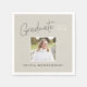 This modern graduation paper napkin features space for a photo of this year’s graduate. The design is accented with trendy, handwritten-style typography and features the graduate’s name on a tan background.