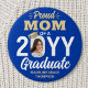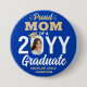 Show your joy for the graduating senior with a stylish custom photo "Proud Mom" round graduation button. The picture and text on this template are simple to personalize. The colors and font styles can be changed with the Zazzle Design Editor tool. Featuring elegant modern typography and stylish calligraphy script, the royal blue and gold design includes the graduate's photo, name, and class year. Please note that the gold is printed color, not metallic foil. This keepsake accessory adds a unique touch to a commencement ceremony or graduation party outfit. Congratulations to the graduate!