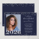 Celebrate an unforgettable milestone with this elegant graduation party invitation featuring an editable navy blue background accented with a faux silver glitter 2026 and silver confetti for a modern classic look. The layout highlights a large graduate photo on the left with the Class of 2026 displayed boldly and the event details on the right including the graduate’s name and school. CHANGES: Change the background color to your school color, party color or favorite color in EDIT. Ideal for high school or college celebrations, this invitation is a polished way to invite family and friends to celebrate your graduate in style.