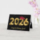 Gold foil balloons for 2026 graduation on a black background with a red cap and gold confetti.