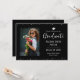 Classic Elegant mortar graduation hat graphic with modern script font graduation announcement postcard. Black and silver design.