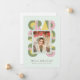 Retro-style, yet modern, graduation announcement photo card that features the word "GRAD" designed with geometric shapes in various colors that form a border around the photo of the graduate. Retro colors—green, dusty pink, mint—add to the card's retro style.