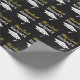 The graduate's name and Mastered It accompany a white grad's cap with class of 20xx in a pattern. You can edit the text to show the grad's name and year the student is receiving the master's degree. The wrapping paper is black, white, and gold. The name of the grad will be in a faux (not foil) gold cursive script.