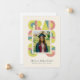 Retro-style, yet modern, graduation announcement photo card that features the word "GRAD" designed with geometric shapes in various colors that form a border around the photo of the graduate. Retro colors—green, dusty pink, brown—add to the card's retro style.