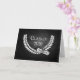 2026 graduation card with an elegant white laurel wreath symbol and diploma on a slate rock textured background.