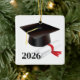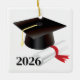 Graduation ornament is shown with a grad cap and scroll print with date.