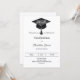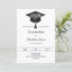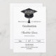 A modern and stylish black and white invitation for a graduation party. Decorated with a black graduation cap. Personalize and add a name, and the details.