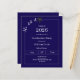 A modern and stylish dark blue and white invitation for a graduation party for a guy. Text: He did it. Decorated with a black graduation cap. Personalize and add a name and the details.