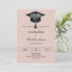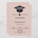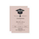 A modern and stylish blush pink neutral invitation for a graduation party. Decorated with a black graduation cap. Personalize and add a name, and the details.