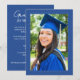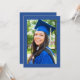 Celebrate your graduate’s big achievement with this stylish graduation party invitation featuring a bold blue background and a modern photo layout. The design highlights a full-size graduate photo on the front with elegant script and clean typography for event details. Perfect for announcing a graduation celebration, open house, or backyard party with family and friends. This customizable invitation allows you to add your graduate’s photo and party information to create a memorable keepsake for this special milestone.
