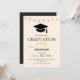 Elegant graduation party invitation with a clean white background, soft gold accents, and a classic graduation cap design. Fully editable template to personalize the name, date, time, location, class year, and RSVP details. Perfect for high school or college graduation celebrations.