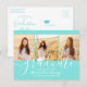 Graduation Party Modern Script Teal Blue 3 Photo Inbjudan Vykort