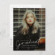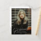 Denna moderna, eleganta och stilrena kombination av fotogradueringsannonsering med manus har en överlagring av manus för examen och anpassningsbart namn, skola och foto på framsidan. Baksidan har gratulationer och evenemangsinformation med ytterligare ett foto. Ett bra sätt att visa upp din examen.