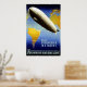 Ovanligt förekommande vintage resor poster reklamresor från Tyskland till Sydamerika på tre dagar med hjälp av luftfartyget Graf Zeppelin.