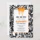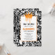 😊 Börja firandet med ett slående urban art-verk som omedelbart berättar för gästerna datumet. Framsidan har ett tätt fält av svartlinje-graffiti på en skarp vit duk, krönt av en orange dropp-formad krona högst upp. Nedanför håller en bred vit rektangel med en fin orange kant alla födelsedagsdetaljer, vilket gör denna "save the date"-födelsedagsinbjudan till ett stilrent tillkännagivande som känns fräscht för alla åldersgrupper. 🎉✨