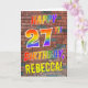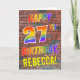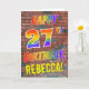 Framsidan av detta pulserande, spännande och roligt födelsemönster med hälsningskort är märkt med LYCKLIG 27:e BIRTHDAY, där brev har en flerfärgad regnbåge som övertonande mönster och en gult för färgad med eget namn på en vägg av tegelstenar i mönster. Utseendet inspireras av graffiti eller gatukonst som ritas på en vägg. Insidan innehåller ett anpassat hälsning-födelsedagsmeddelande. En roligt, lycklig, ett hälsningskort för anpassadets födelsedag som detta kan vara ett speciellt sätt att skicka en födelsedag hälsning till någon som firar sin 27:e födelsedag. [~Z0000357]