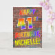 På framsidan av denna sjudande, spännande och öga-inslagna hälsningskort med födelsedagskalematod finns meddelandet"LYCKLIG 41ST BIRTHDAY" med brev som har en flerfärgad regnbåge som övertoningsmönster och en redigerbar gult för färgad i namn på en mönster av tegelväggen. Utseendet inspireras av graffiti eller gatukonst som ritas på väggen. Insidan innehåller ett hälsning-meddelande på personligens födelsedag. En sådan här hälsningskort för anpassadets födelsedag kan ges till någon som firar sin fyrtioårsdag. [~Z0000357]