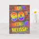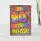 Framsidan av detta spännande, livfulla och roligt födelsetal för hälsningskortet har budskapet "LYCKLIG 90:E BIRTHDAY" med brev som har en flerfärgad regnbåge som övertoning mönster, och en gult för personlig namn färgad, på en mönster av en tegelvägg. Utseendet är inspirerat av graffiti eller gatukonst som ritats på väggen. Insidan innehåller ett meddelande från hälsning på personligens födelsedag. En roligt, lycklig, ett hälsningskort för personligens födelsedag som detta kan vara ett speciellt sätt att fira någons 90:e födelsedag. [~Z0000357]