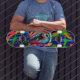 Den här skateboard-designen har en graffiti-inspirerad öga från abstraktens destruktionstest. En skarp och färgstark tavla som får motion och roligt. Framför allt är det coola och får ett rider där. Vuxnor, tonåringar, barn.
