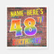 Framsidan av denna pappra napkin-design med öga-infångande, roligt och pulserande födelsedag har en personlig namn, och meddelandet "48:E BIRTHDAY!" med brev med ett flerfärgat regnbågsspektrum inspirerat mönster, på en tegelvägg inspirerad av mönster. Stil inspireras av graffiti eller gatukonst som dras på en mur. Roligt pappra blöjor av det här slaget kan användas vid en födelsedagsfest som hålls för att hedra någon som firar sin 48-årsdag. [~Z0000367]