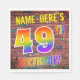 Framsidan av denna spännande, roligt- och öga-matande pappra napkindesign har ett eget namn, och meddelandet "49TH BIRTHDAY!" med brev med ett flerfärgat regnbågsspektrum inspirerat mönster, på en vägg av tegelstenar inspirerad av mönster. Stil inspireras av gatukonsten eller graffiti som ritats på en mur. Roligt pappra servetter som denna kan användas vid en födelsedagsfest som hålls för att fira någons 49-årsdag. [~Z0000367]