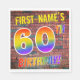 Framsidan av denna sjudande, spännande och roligt pappra napkin-design har ett eget namn, och meddelandet "60:E BIRTHDAY!" med brev med ett flerfärgat regnbågsspektrum inspirerat mönster, på en tegelvägg inspirerad av mönster. Utseendet inspireras av graffiti eller gatukonst som ritas på en vägg. Roligt pappra blöjor av det här slaget kan användas vid en födelsedagsfest som hålls för att hedra någon som firar sin 60-årsdag. [~Z0000367]